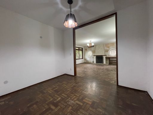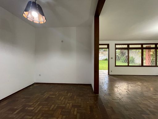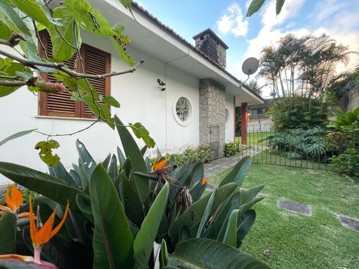 A casa principal dispõe de um amplo salão em 2 ambientes com lareira, varandão, perfeito para momentos aconchegantes, além de uma espaçosa sala de jantar. São 3 quartos, sendo 1 suíte, todos com armários embutidos, além de banheiro social. A cozinha é funcional e equipada com armários planejados, acompanhada de área de serviço e dependência completa.