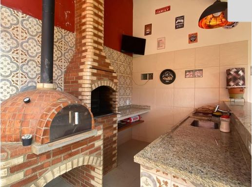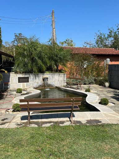 Na área externa, o lazer é garantido com churrasqueira e forno a lenha, além de um espaço amplo com galinheiro, árvores frutíferas e lago, proporcionando um verdadeiro refúgio em meio à natureza.
