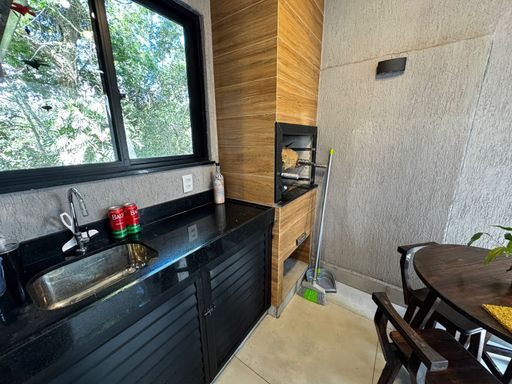A casa é composta por 2 quartos bem iluminados, sala integrada à cozinha, lavabo, 2 banheiros, além de móveis planejados que otimizam os espaços. Conta também com varanda charmosa, quintal privativo com ducha e área gourmet aconchegante, perfeita para momentos de lazer.