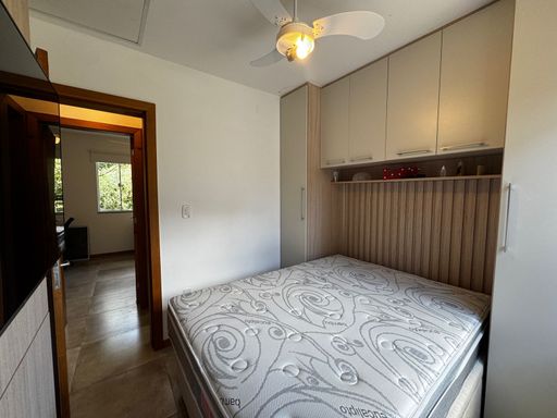 O condomínio oferece portão eletrônico, interfone, circuito interno de segurança, espaço gourmet com churrasqueira, e vaga de estacionamento, garantindo tranquilidade e comodidade aos moradores.