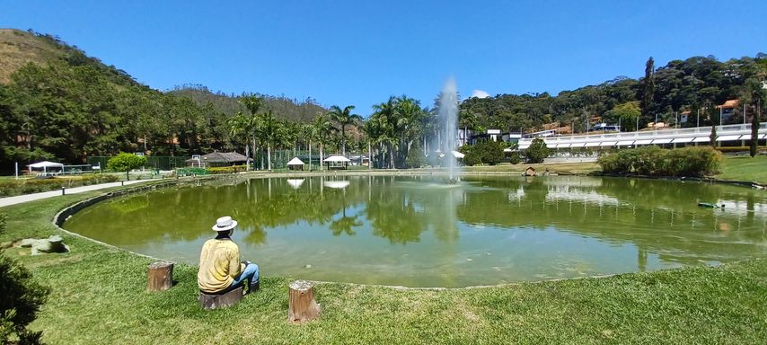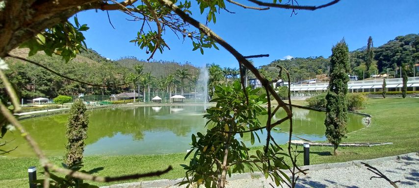 Cercado pela Mata Atlântica, Pista no entorno do Lago com Chafariz, habitado por Patos Canadenses e encantado por nosso casal de Cisnes Negros;