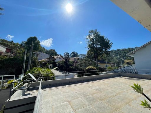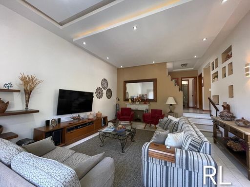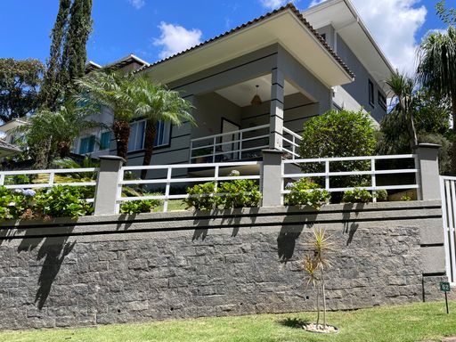 Logo na entrada, uma charmosa e aconchegante varanda dá as boas-vindas e conduz aos ambientes internos. O imóvel dispõe de uma confortável sala de estar com lareira, sala de jantar, ampla cozinha, lavabo e uma suíte térrea, ideal para maior praticidade no dia a dia.