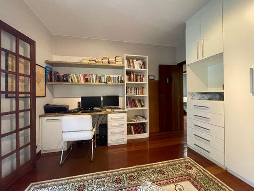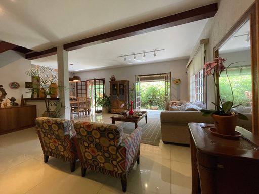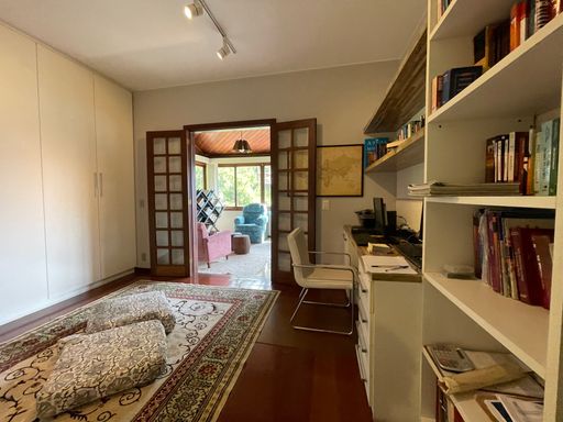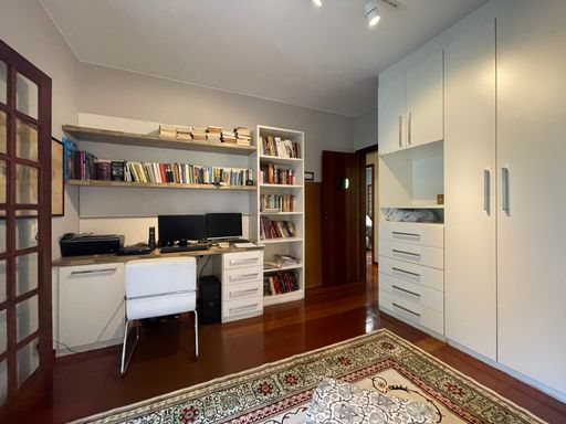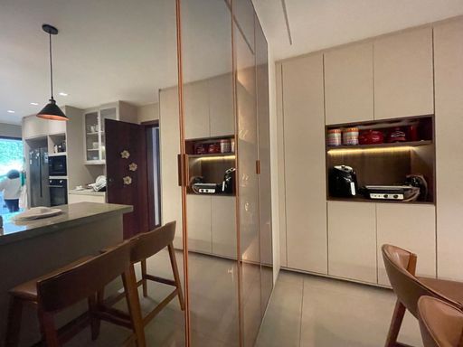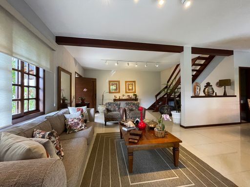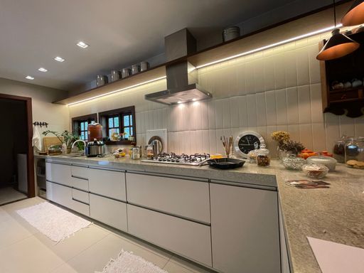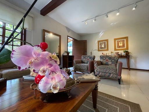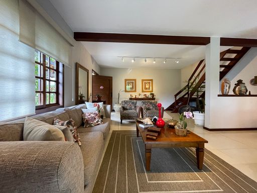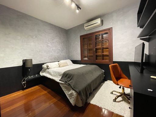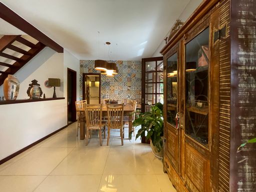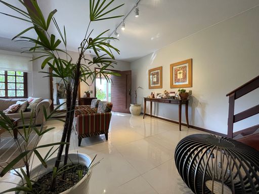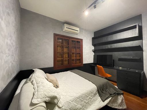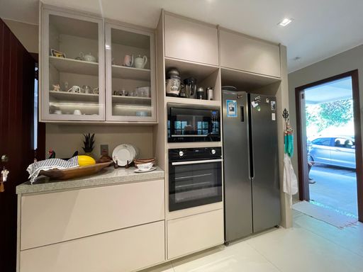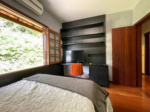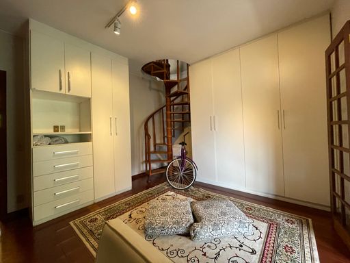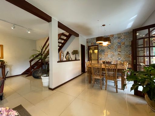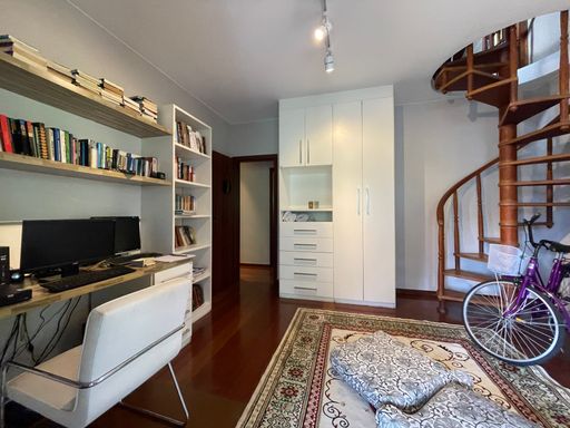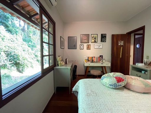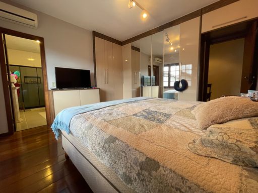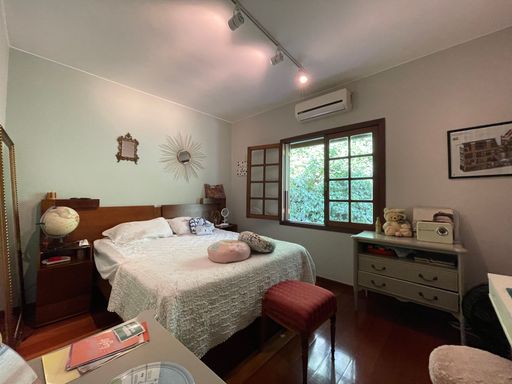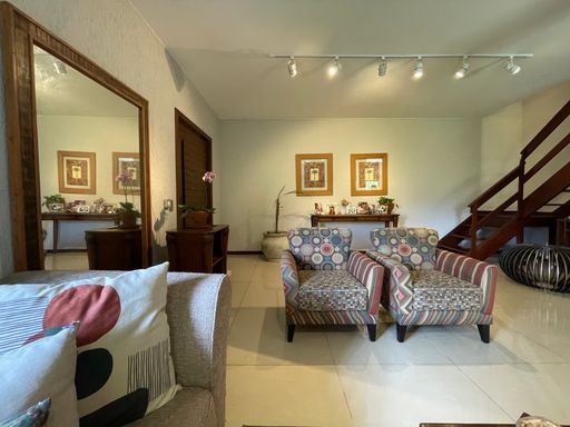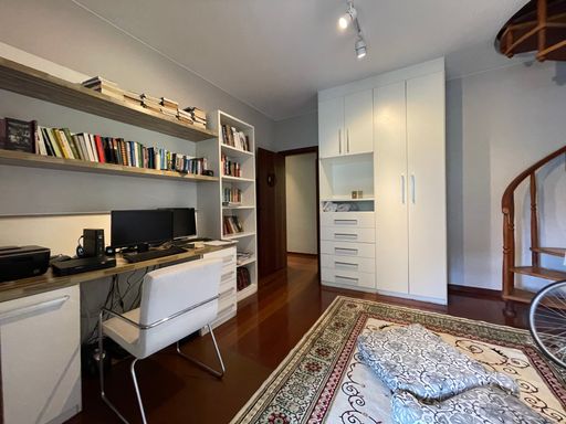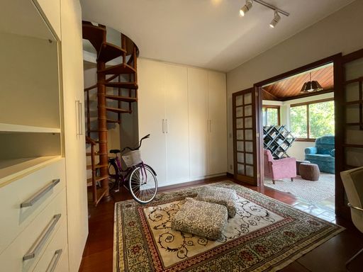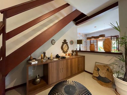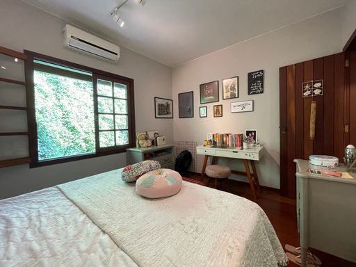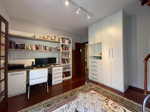 No segundo piso, dispõe de 4 quartos, sendo 1 suíte, todos com armários planejados e ar-condicionado, além de banheiro social. Um dos quartos possui acesso a um varandão privativo, ideal para momentos de tranquilidade. A casa conta ainda com um sótão habitável, que pode ser utilizado como escritório, sala íntima ou espaço multiuso.