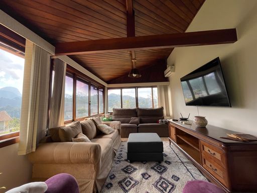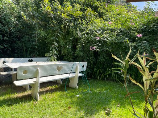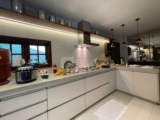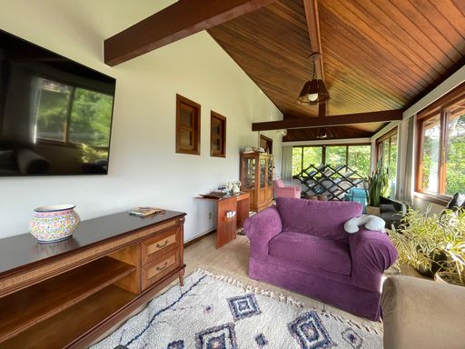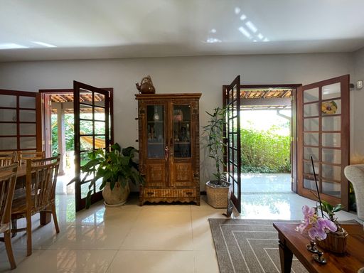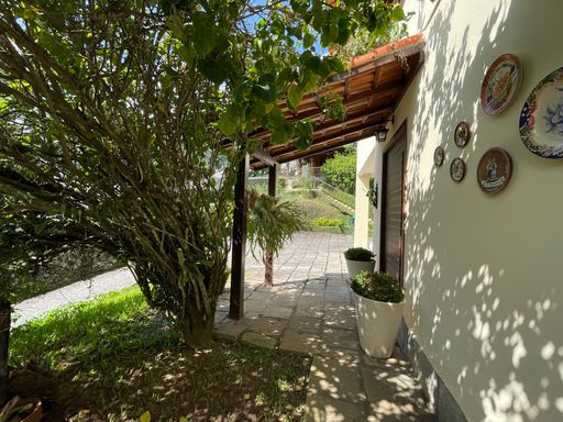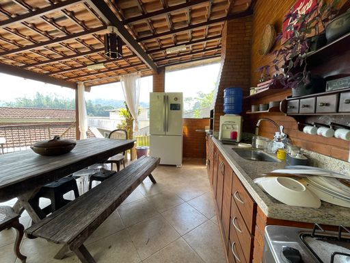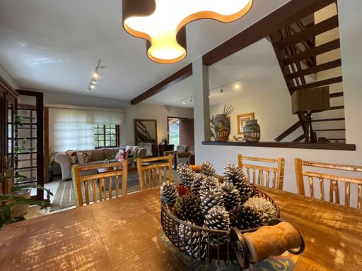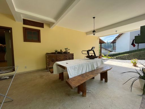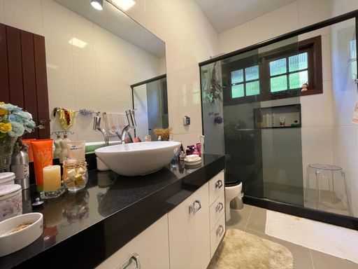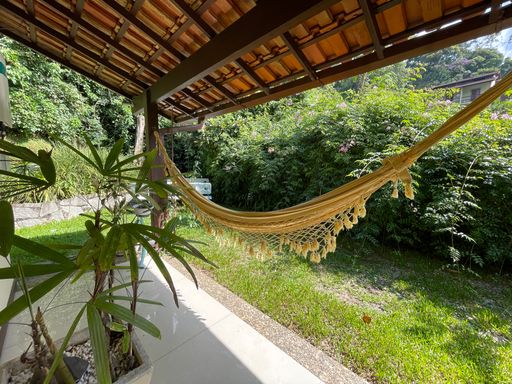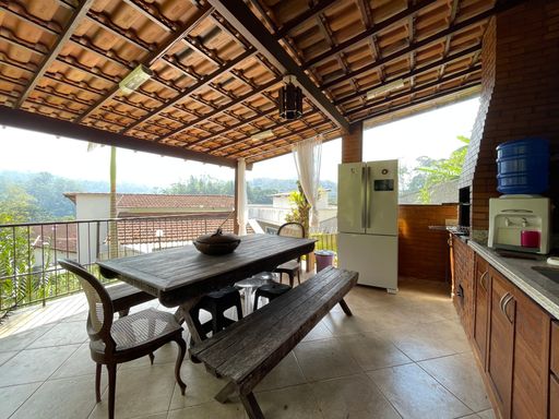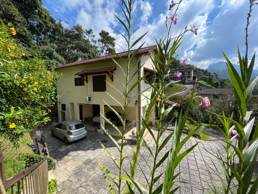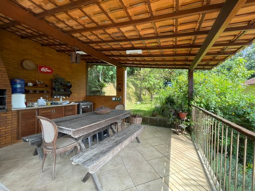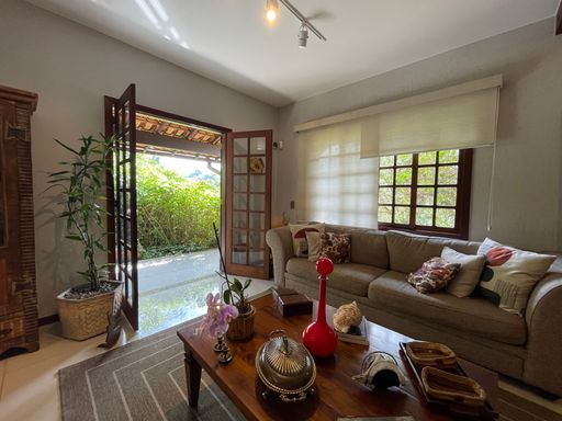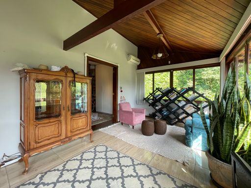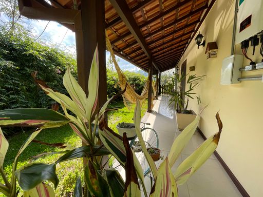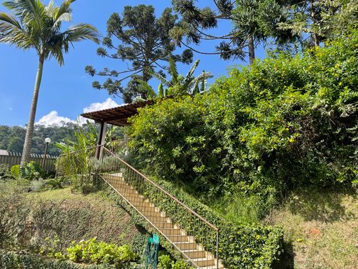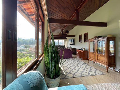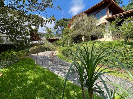 Na área externa, oferece quarto de guardados, espaço gourmet, garagem coberta para 2 carros, além de amplo espaço de estacionamento e portão eletrônico. O destaque fica por conta do lindo jardim gramado e da vista privilegiada, criando um ambiente acolhedor e perfeito para viver bons momentos.