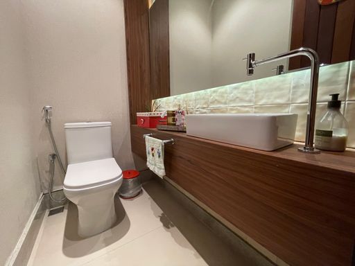 O imóvel apresenta acabamento de alto padrão, com tábua corrida e porcelanato, além de contar com aquecimento a gás, sistema de energia eficiente e câmeras de segurança, garantindo conforto e tranquilidade.